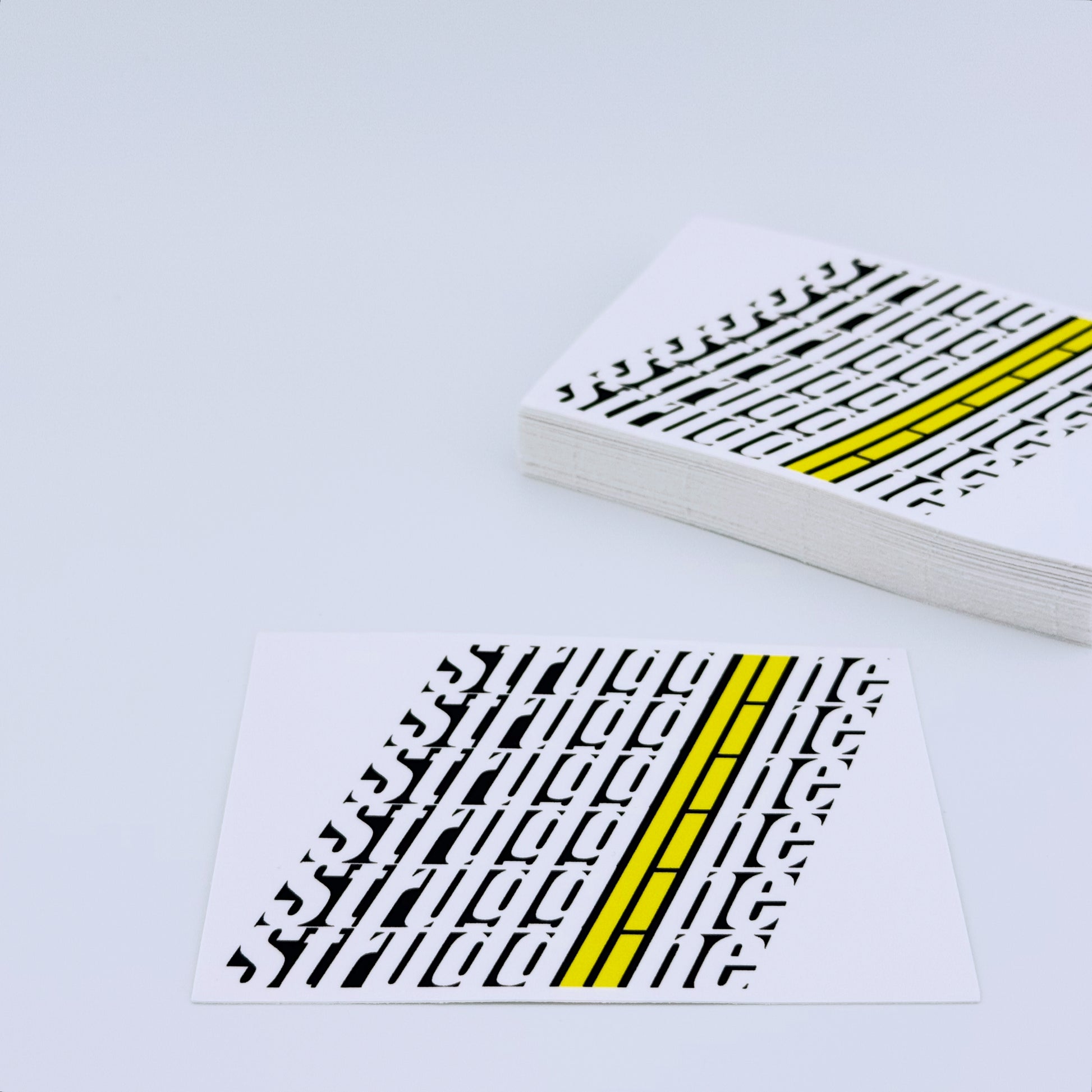 Struggline duplicated and skewed with colors and shapes to imply street markings.